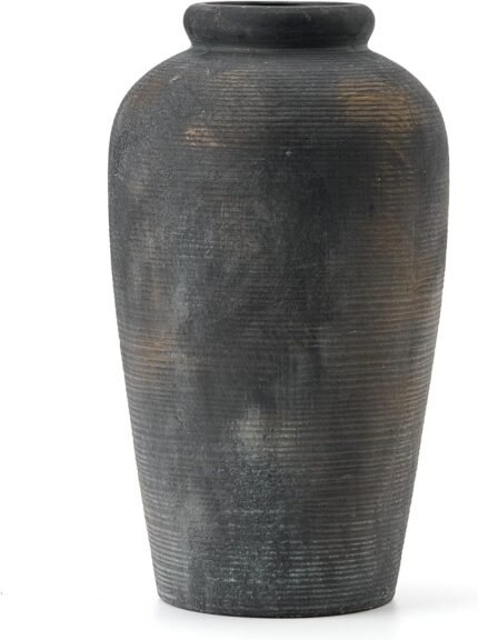 Large Ceramic Rustic Vase, 11 inch Minimalist Decorative Farmhouse Tall Vase for Home Decor, Living Room, Shelf Decor, Enterway, Wedding, Table Decoration, Bronze. This large vintage vase can set the stage anywhere in your home. This boho vase exudes timeless charm and is built to last, keep your decor looking fresh and up-to-date year after year.